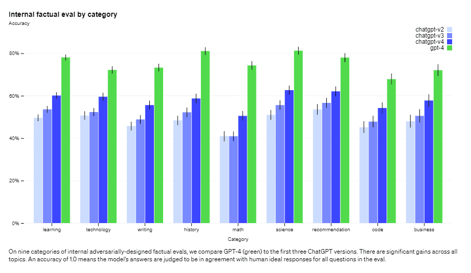 As you can see in this evaltuation measuring the improvements in accuracy across updated GPTs, as the technology improves, AI hallucinations are becoming less prevalent.